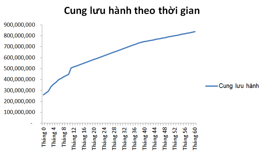 - Tổng quan: Xong 3 bước trên thì ở đây sẽ tự động vẽ 1 biểu đồ hình tròn hiển thị phần trăm phân bổ token, và 1 biểu đồ cung lưu hành theo thời gian